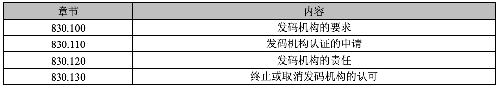 表1 美国《UDI最终规则》第830部分子章节C对UDI系统发码机构的要求